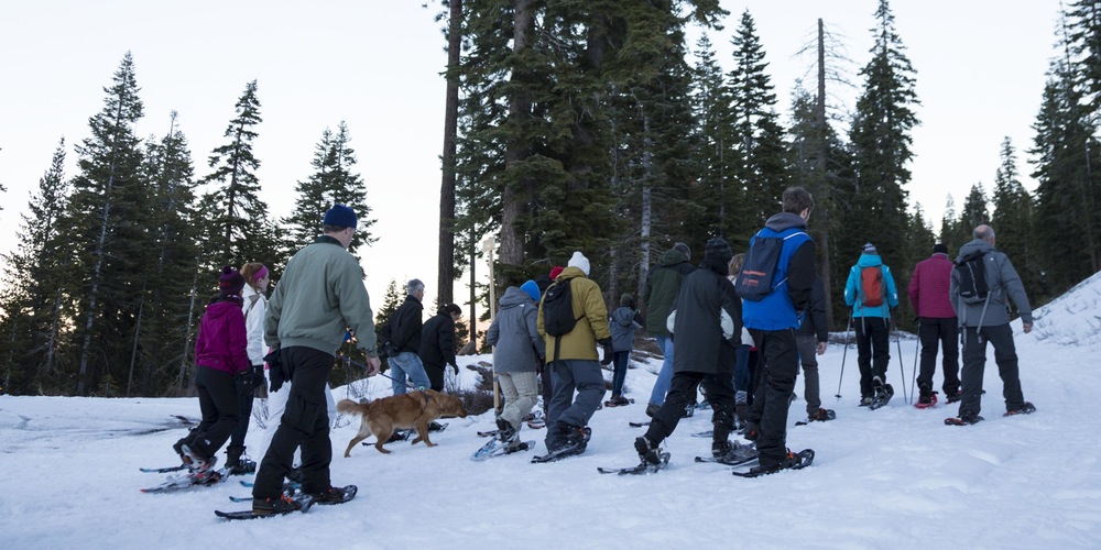 For resort snowshoeing, Royal Gorge on Donner Summit or Northstar California have an array of trails that that are exclusively for snowshoers along with access to groomed trails. Groomed tails make it a lot easier to walk on the big wide frames so you can cover more ground with less effort. At Northstar, take the trail up to Sawmill Lake and take a hot cocoa break in the train caboose.